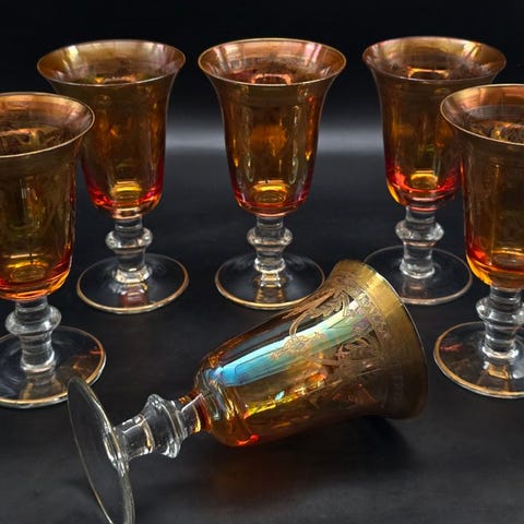 Drikkesæt til 6 (6) - Murano-glas, 24 kt guld