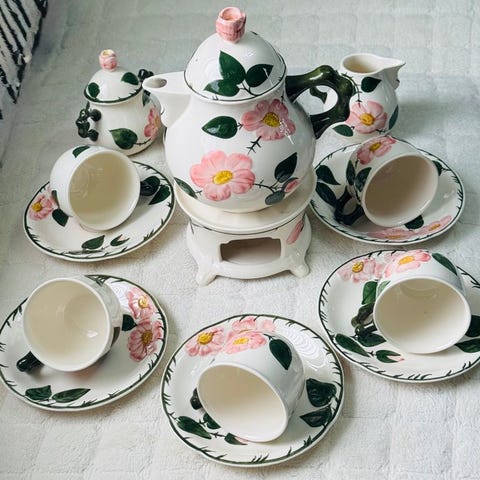 Hver genstand er i meget god stand, undtagen en tallerken som har en lille fejl, der ikke påvirker brugen