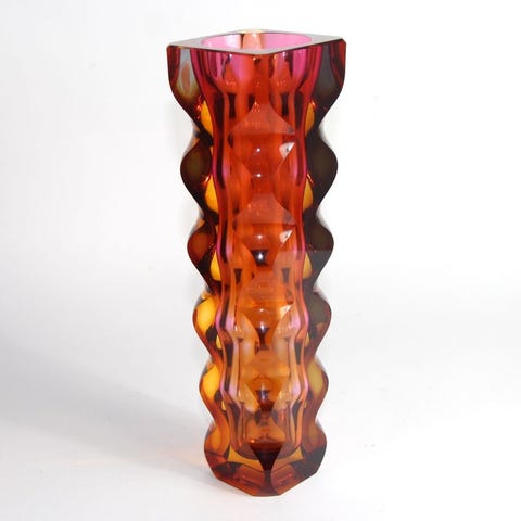En tung håndblæst Sommerso-farvet skål af Josef Hospodka for Chribska, dateret 1950–1960, med røde og blå farvelag, dimensioner 24 cm bred, 10 cm høj, 22 cm dyb, vægt 1,2 kg, mønster nr. 316/5/22, i fremragende stand. Klik på den blå "gå til varen" knap, for at købe eller byde på denne vare. Den samlede pris vil blive vist inden du afgiver dit bud.