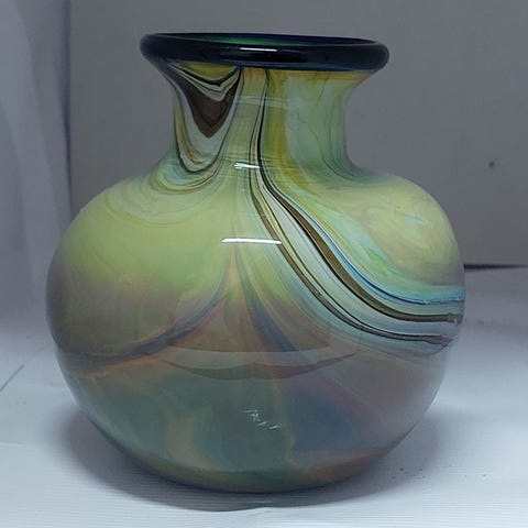 Krukke af Murano-kunstglas, dateret fra 1960'erne. En genstand med stærk visuel effekt, kendetegnet ved kompleks håndværk og en æstetik, der fuldt ud indkapsler fascinen ved det italienske Mid-Century Modern. Ideel for samlere af kunstglas, perfekt til at udsmykke en vintage toilette, berige et oplyst vindue eller fungere som en elegant og lysende møbeludstyr i enhver indretning.