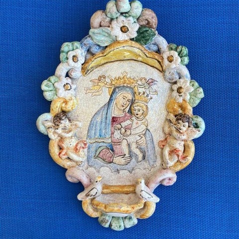 Keramisk relieffrigur med titel Familie - 3,5kg af Hanna Mobach (1934-2003), håndsigneret, fra Nederlandene, i fremragende stand, 24 cm bred, 37 cm høj og 5 cm dyb, vægt 3,5 kg. Klik på den blå "gå til varen" knap, for at købe eller byde på denne vare. Den samlede pris vil blive vist inden du afgiver dit bud.