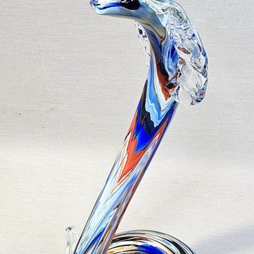 Et par skulpturer i opalineret Murano-glas, kunstglas.