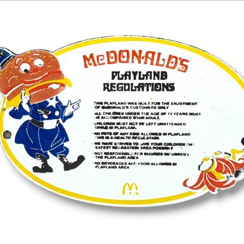 Originalt McDonald’s metalsymbol ‘M’, oprindelse Nordamerika, 1970–1980-tiden, i god stand med små brugsspor, mål 41 × 43 cm. Klik på den blå "gå til varen" knap, for at købe eller byde på denne vare. Den samlede pris vil blive vist inden du afgiver dit bud.