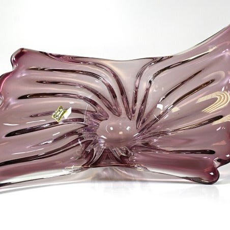 Val Saint Lambert krystalvaske, signeret med originalt mærkat, cirka 1960, blåst og varmformet i en organisk, skulpturel form med twistet, flydende bevægelse, tykt glas med grøn irisreflektion, højde 11 cm, bredde 30 cm, dybde 29 cm, vægt 3 kg, god stand med enkelte ældrestreger, ingen revner eller chips, oprindelse Belgien, Liège. Klik på den blå "gå til varen" knap, for at købe eller byde på denne vare. Den samlede pris vil blive vist inden du afgiver dit bud.