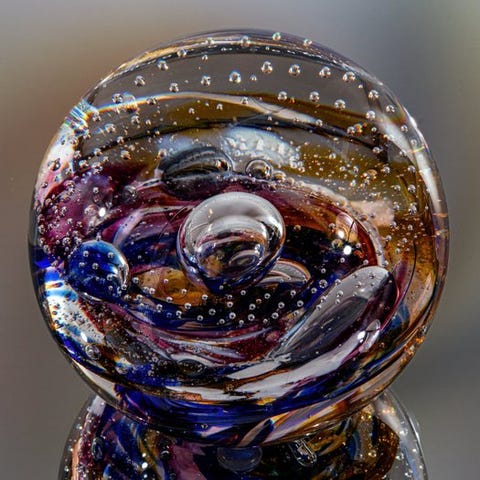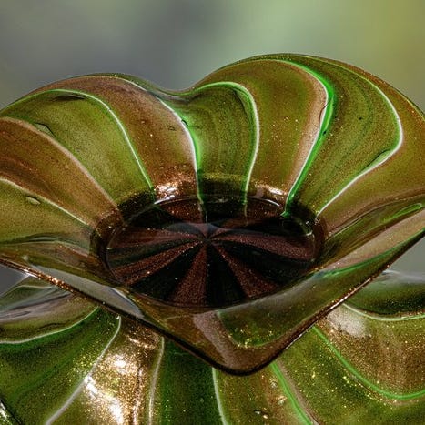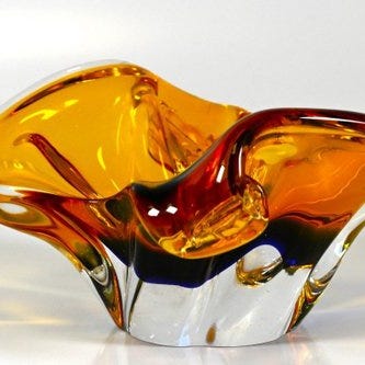 Meget smukt askebæger, fremstillet på Murano-øen i midten af det 20. århundrede. Da askebægeret hverken har signatur eller etikette, er en entydig tilknytning til en bestemt producent ikke mulig. Meget høj kvalitet håndlavet unik genstand.