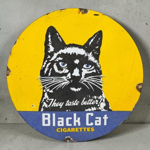 Originalt reklameskilt i emalje fra det belgiske cigaretmærke Boule d’Or. Produseret af firmaet Langcat fra Bussum i 1950’erne.