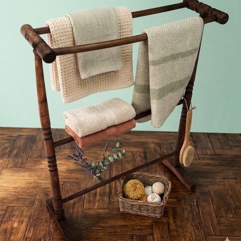 Elegant vintage opklædningsstativ i massivt træ med en varm valnøddefarvet nuance. Et tidløst møbeltilbehør, perfekt for dem der elsker orden og klassisk stil på soveværelset eller i walk-in-closet.