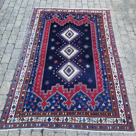 Håndvævede kilim: Ca. 180×280 cm stor, meget fin og tynd, anvendelig på begge sider og i meget god stand.