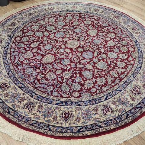 Rund Sarough Mir tæppe fra Indien, uld på bomuld, 250 x 250 cm, fra det 21. århundrede, i meget god stand, ikke professionelt renset, med ægthedscertifikater. Klik på den blå "gå til varen" knap, for at købe eller byde på denne vare. Den samlede pris vil blive vist inden du afgiver dit bud.