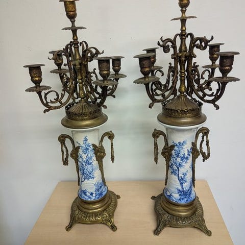 Fransk Delftblå porcelænsvaspendel fra cirka 1850–1900 med mekanisk otte-dages urværk, 63 cm høj, 29 cm bred, 25 cm dyb, vejer 6 kg, med optræksnøgle, porcelæn i perfekt tilstand og uren i gang. Klik på den blå "gå til varen" knap, for at købe eller byde på denne vare. Den samlede pris vil blive vist inden du afgiver dit bud.