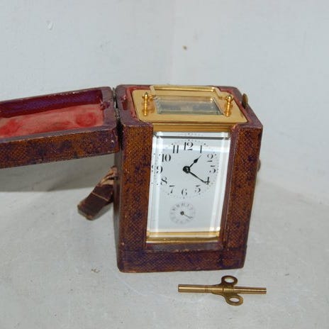 rejsevækkeur med slagværk på gong, går godt, emaljeret frontplade.