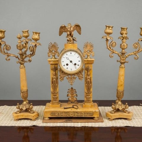 Boulle-ur - 4-piece clock garniture with a pair of candelabras and bracket - ...