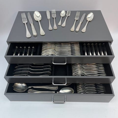 Beskrivelse: En smuk bestikæske fra Christofle, udført i modellen América. Den 77-delte sæt sidder i ny æske.