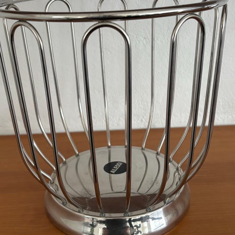 Den klassiske Alessi frugt / citrus kurv, der er både praktisk og flot. I stål og nem at veligeholde. Flot stand. 23 cm høj. og 22 bred.