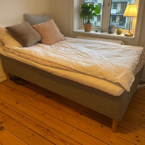 Seng til salg – købt hos dinseng.dk i efteråret 2020 og har kun været brugt i begrænset omfang som gæsteseng. Den fremstår derfor generelt i pæn stand.
