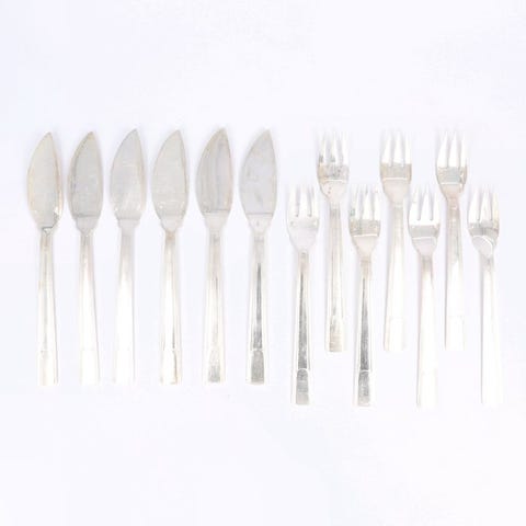 Beskrivelse: Smukt sæt med 12 fiske-knive, udført i modellen Malmaison.