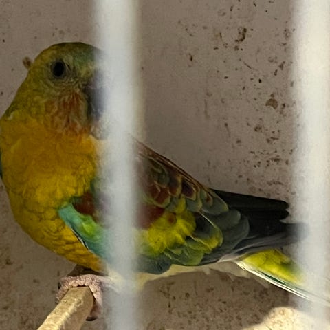 Står du og mangler en sød og social fugl, er dette måske det rette match. Hun er vant til børn og trives med daglig kontakt.