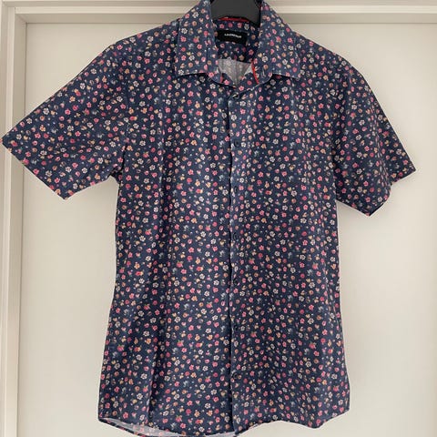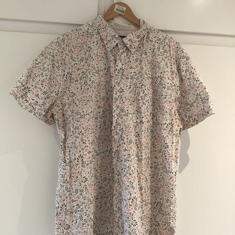 Berntson Kortærmet skjorte i str 42 i multifarvet blomstermønster. Knaplukning foran og klassisk krave, lavet i blød viskose.