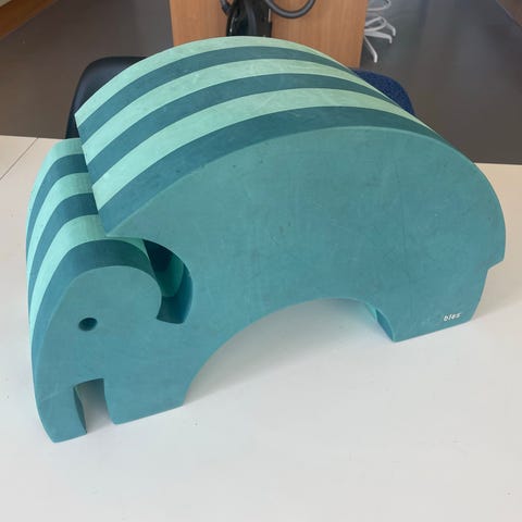 Tumledyr fra bObles formet som en elefant og kylling i farverne blå, grå og hvid.