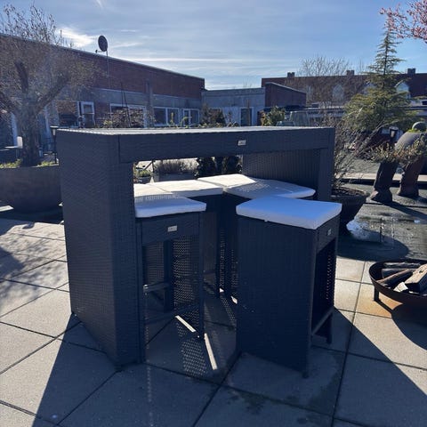 Pelmondo bålbord med hjul str. 90 x 90 højde 46 cm. lille rids i bordet ( se billede )