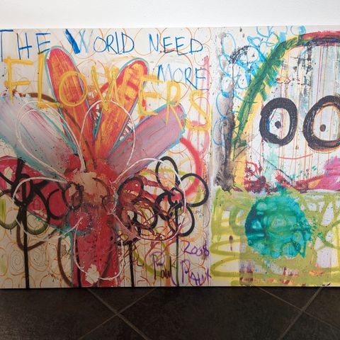 Fint Poul Pava billede på tryk i glade farver i sort ramme.
