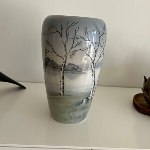 B&G vaser med, hvid med blå og brun dekoration