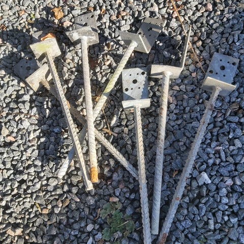 6 stk.Jordspyd til stolper pr. Stk. Kr. 15,- alle for kr. 75,-