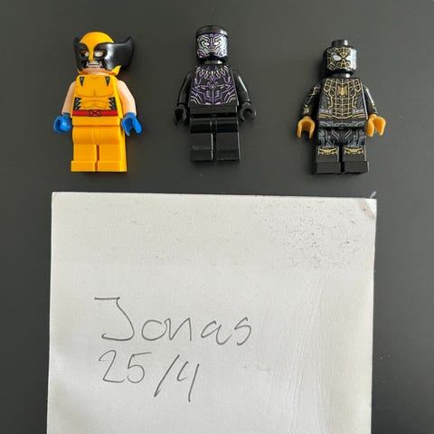 LEGO Marvel Loki minifigur med grøn kappe og detaljeret tryk på krop og ben. Har guldhjelm med horn og matchende stav som på billederne.