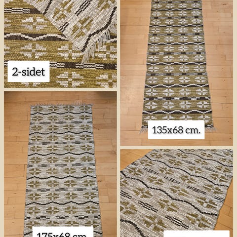 Meget smuk lang plasttæppe, vævet i en dejlig farvepalette af jordfarver og lysegul 🌼🌻 Mål 298x68 cm. Pris 685 kr.