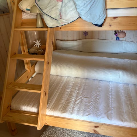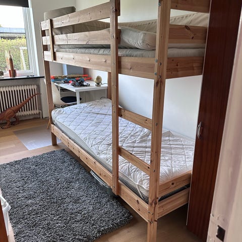 Stabil køjeseng, 70x200 uden madrasser men med sengehest. Kan også bruges som 2 enkeltsenge