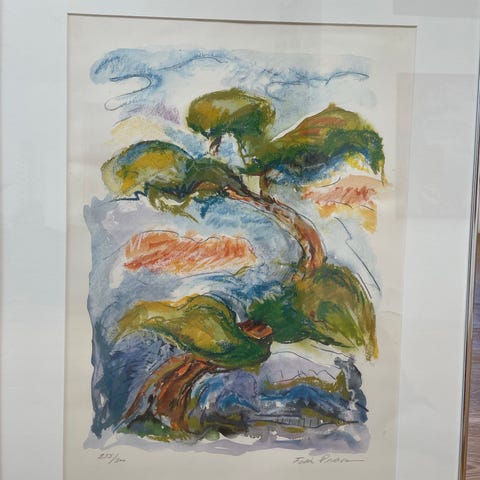 Flot abstrakt litografi med mange stærke farver og strukturer i motivet. Trykket er nummereret 69/100 og signeret med blyant i kanten.