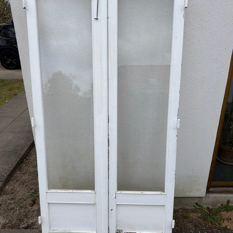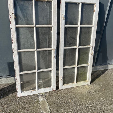 Fransk dør med glas 2 stk ikke massive en dobbelt og en enkelt med små skader men ikke i glas
