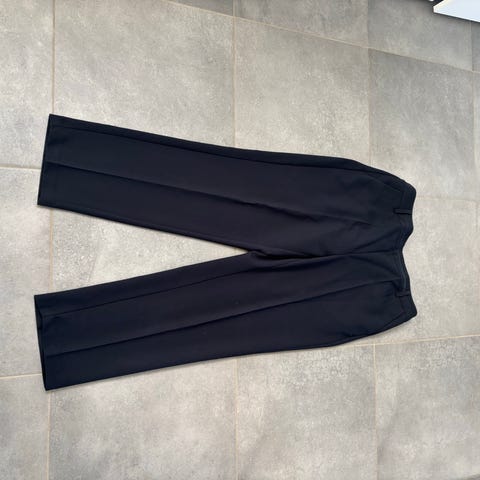 Navy Blå blazer fra KAFFE i str 44 med én knap foran. Har lommer i siderne og glat foer indeni. Sælges alene eller sammen med tilhørende bukser for kr 400.