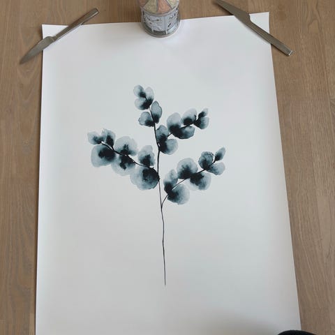 Plakat , Desenio, motiv: Eucalyptus, Smukt indrammet plakat med eucalyptus som motiv. Kan fx hænges op i badeværelset, soveværelset eller i sommerhuset. Mål inkl ramme: 62,5 x 92,5 cm.