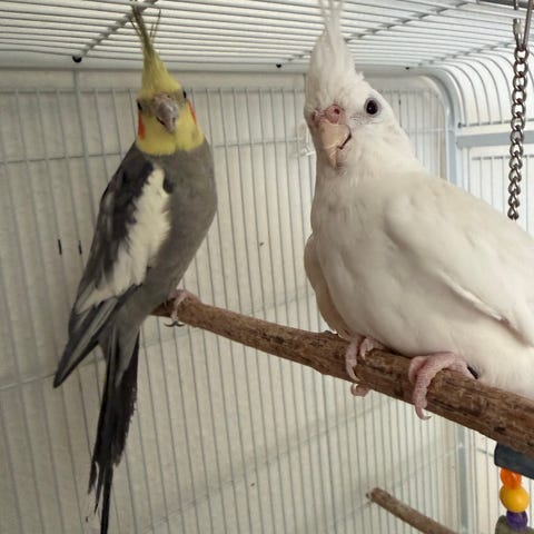 Begge er sunde og raske samt er de meget tamme og kan godt lide at omgåes med mennesker børn som voksne ..