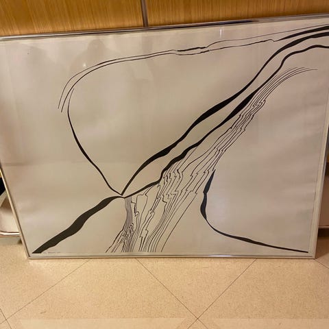 Tegningen forestiller en hare og et barn i ramme med passepartout. Billedet har ophæng på bagsiden, så det er lige til at sætte op på væggen.