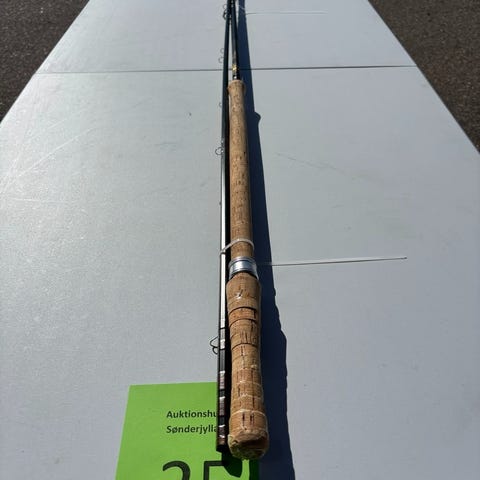 Shimano spinnestang – 9’6” – 5–25 g. Shimano spinnestang model ASPSTTG96ML i moderne kulfiberkonstruktion med Shimano Spiral X og Hi-Power X teknologi, som giver en let og stærk klinge. Stangen har en længde på 9’6” (ca. 290 cm) og en kastevægt på 5–25 g med medium light aktion, hvilket gør den velegnet til kystfiskeri, å og let predatorfiskeri. Udstyret med korkhåndtag med let patina samt intakte øjer og klinge. Fremstår i pæn brugt stand med almindelige brugsspor. Fra dødsbo