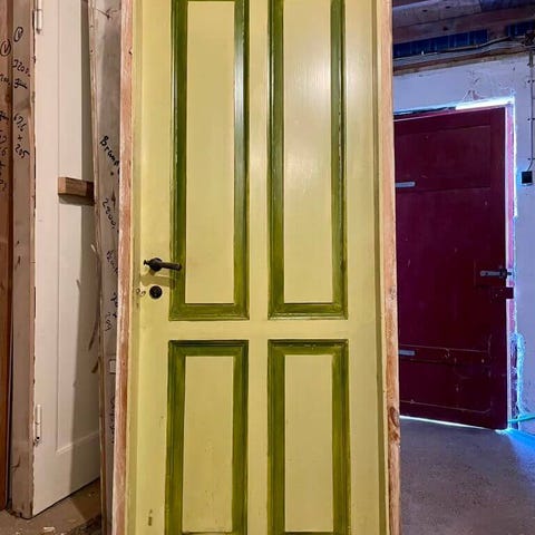 Original Dannebrogsdør med karm og bundstykke. Inkl. greb og med fine hamborghængsler.