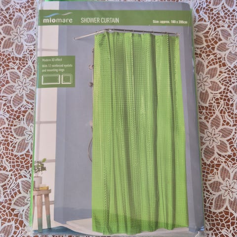 2 stk badeforhæng med integrerede øjer (bruges uden gardinringe.