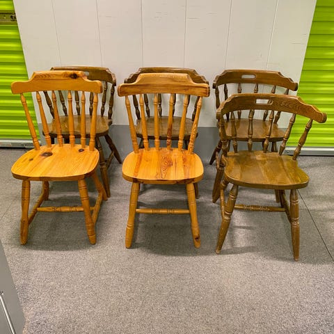 Standen er brugt, hvilket alderen på stolene nok retfærdiggør. De har patina alle sammen, men ingen af møblerne er svage i ledede, vipper eller vakler. På en 1-10 skala vil jeg vurdere deres generelle stand til at ligge på en 7’er.