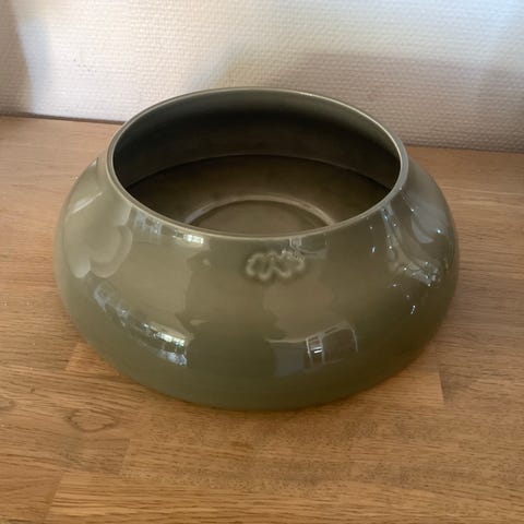 Kähler keramik krukke i glasur. målene kan ses på billederne med linealen. - den har to skår. Sender ikke. Flot i farven.