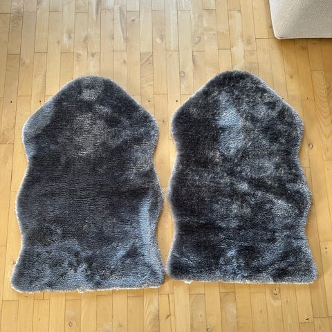 To styks lammeskind. Det ene måler 80x50. Det andet måler 70x45. Sælges for 150 kr stykket eller samlet for 250 kr. Minus røg og husdyr.