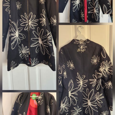 Jakke, str. findes i flere str., Desigual, Se fotos, Smukt materiale med mønster og flotte farver, Næsten som ny, Desigual jakke størrelse er str 40 i deres str dvs mindre estimere 38
