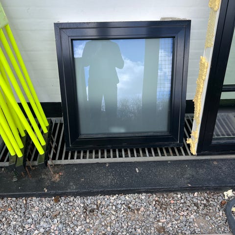 Vinduet er 54x54 cm. Fabriksmalet i lys grå. Er i uåbnet emballage.