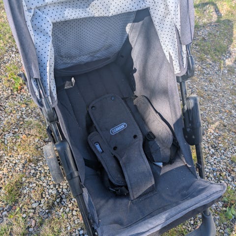 Ryggen kan lægges ned, så barnet kan sove i den.
