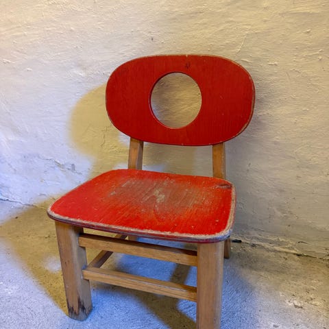Børnestol fra Hukit. Har to styk begge er malet, men skal males eller slibes evt. Bemærk fejl på den ene se billede. Samlet pris for begge.