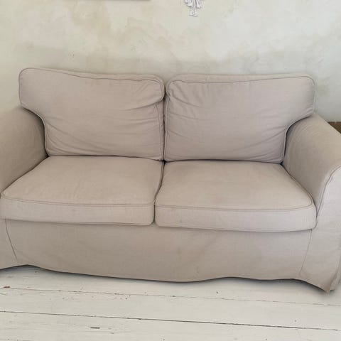 Ikea ektorp sofa gives væk. Skal hentes på Nørrebro. Tæpper kan medfølge hvis ønskes. Det er en 3-personers sofa: