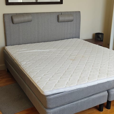 dobbeltseng med boxmadrasser og topmadras