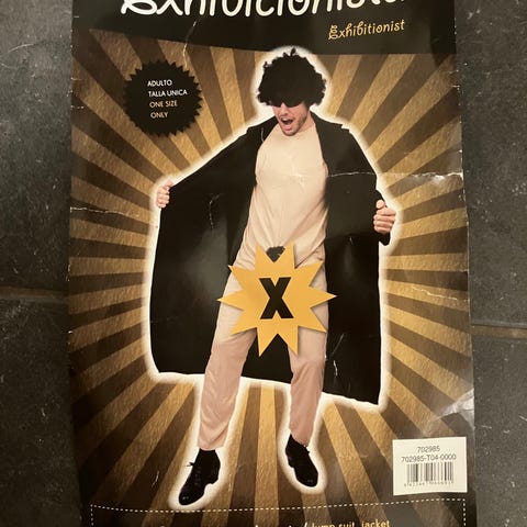 Halloween kostume med hovedløs rytter. lang sort kappe med indlejret skjorte med detaljer. Med maske/oversavet hals og stropper, så det kan spændes fast omkring kroppen.
