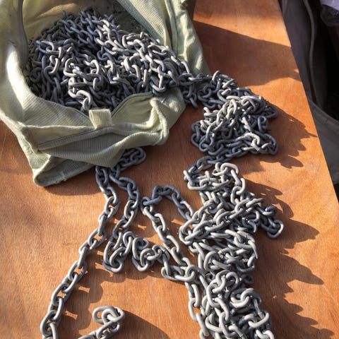 30 m galvaniseret ankerkæde fra 2022. Nypris 3.000. Er som ny. Har kun været i vandet 3-4 gange. Den passer ikke til vores kædehjul.